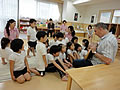 神戸女子大学教育センターに来られているとても評判の良い英語の先生が、『子どもたちと英語で遊んであげましょう』と保育園にきてくださいました。初めはドキドキしていた4・5歳児21名はJ.Jの明るいキャラクターにつられてどんどん積極的になっていきました。
