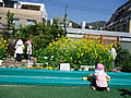 時々、モンシロチョウやミツバチもやってきます。菜の花の種はままごと遊びの材料ですがたくさんあるのでみんな思う存分ちぎって遊んでいます。